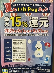 いたペイ祭り8月31日まで還元です